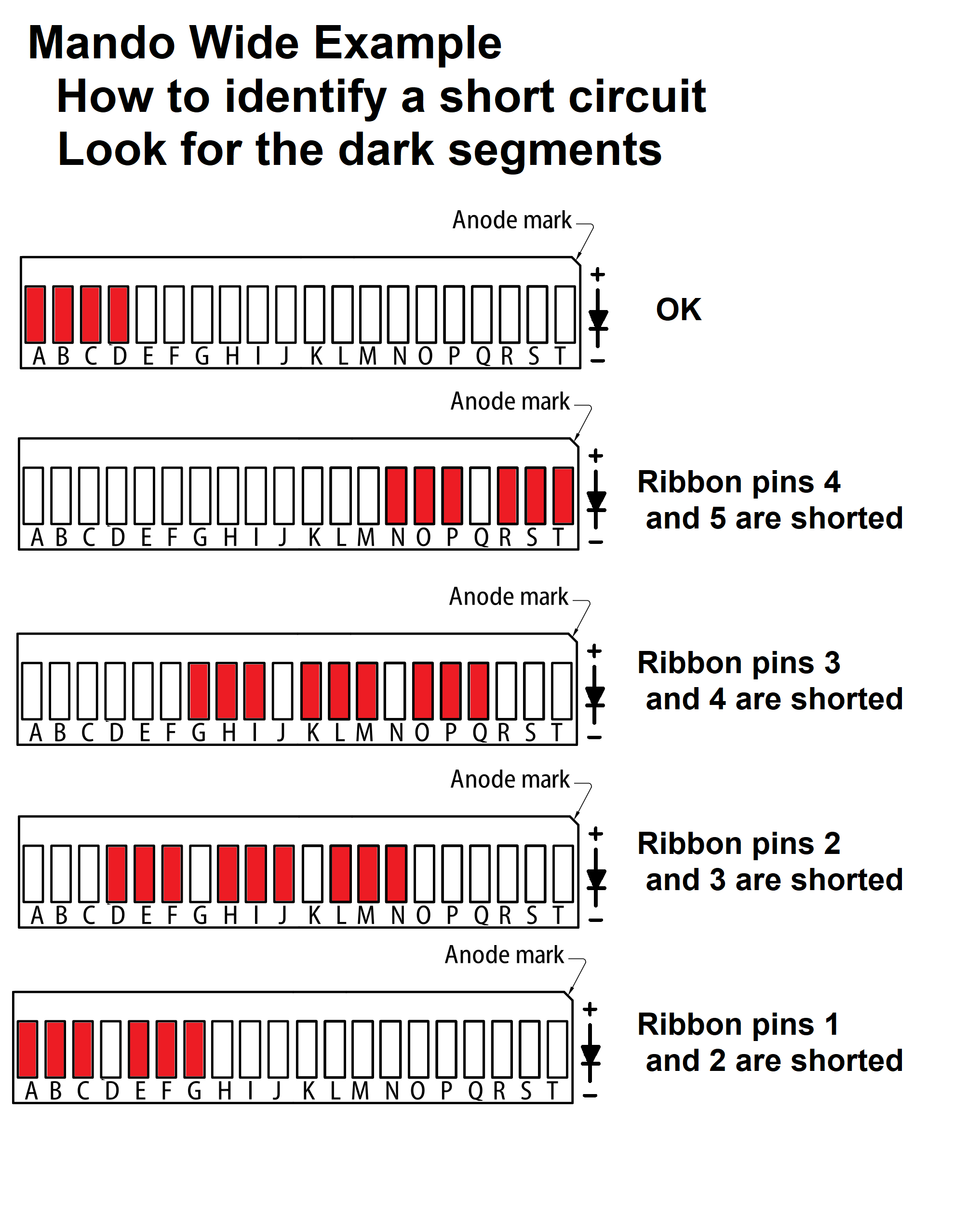 Dark segment on a character display, or segments not lighting correctly